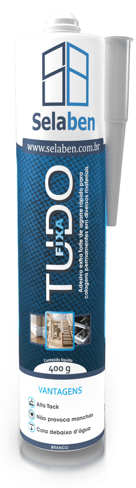 O FIXA TUDO SELABEN ® é um selante monocomponente, de alta viscosidade, tixotrópico, com boa resistência aos raios ultravioleta, de fácil aplicação e trabalhabilidade. O FIXA TUDO SELABEN ® tem alto poder de aderência aliada a outras propriedades físico-químicas tornando